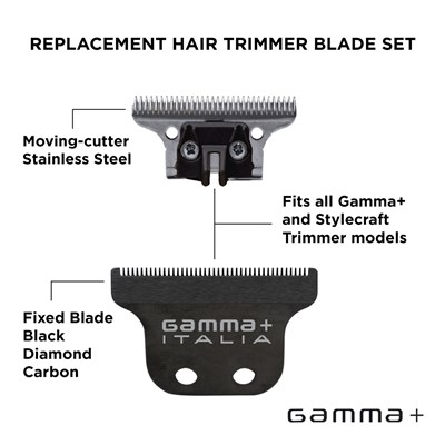 Gamma+ Replacement Classic Fixed Black Diamond Carbon DLC with Stainless Steel Deep Tooth Cutter Trimmer Bl