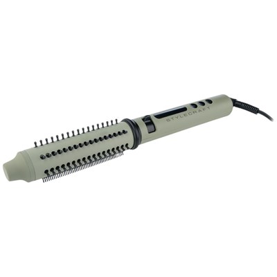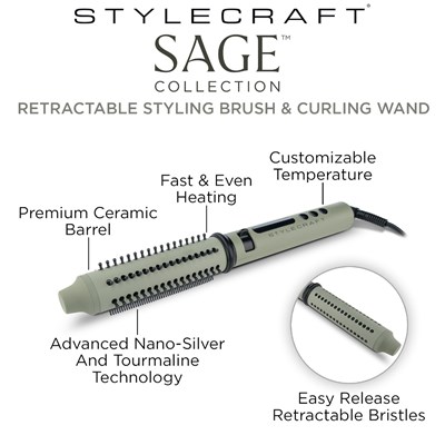 Elevate your hair styling routine with our premium ceramic barrel 2-in-1 Styling Brush and Curling Wand. Transform your hair into a masterpiece with our innovative styling tool, featuring a 1.25 inch premium ceramic barrel infused with nourishing keratin, argan, and coconut oils. Experience ultimate smoothness and a radiant shine as these essential oils work magic on every strand. Designed for efficiency, our curling brush/wand utilizes advanced nano-silver and tourmaline technology to release negative ions, seal cuticles, lock in moisture, and reduce frizz. Say goodbye to dull, lifeless hair and hello to healthier, hydrated locks with enhanced natural shine.