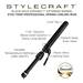Step up any styling routine with the StyleCraft Black Gold Curling Iron; the optimum tool for professionals and everyday users alike. The modish 24 karat gold ceramic barrel emits negative ions that lock in moisture, fight frizz, and deliver unparalleled shine for a look that’s as fashionable as the tool itself. Meticulously crafted for those who demand excellence and durability, the piano wire spiraling grip boasts a powerful spring mechanism that guarantees consistent clamp performance for even the busiest stylists. Precision meets comfort with the extra-long, heat-resistant thumb grip, equipped with ridges for a secure, confident hold. Users can also say goodbye to inconsistent heat with the exclusive Stay-Temp Technology. Just set it and forget it – the temperature stays exactly where it’s programmed, allowing for fret-free styling.